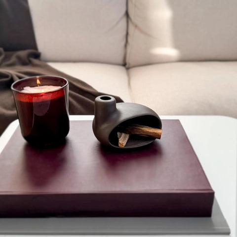 - Palo santo çubuğunu çakmak yardımıyla bellirli bir süre yakın. Ardından üfleyerek ürünün orta açıklığına yerleştirin. Daha fazla duman isteyenler, daha fazla yakın, üfleyerek açıklığa yerleştirin.